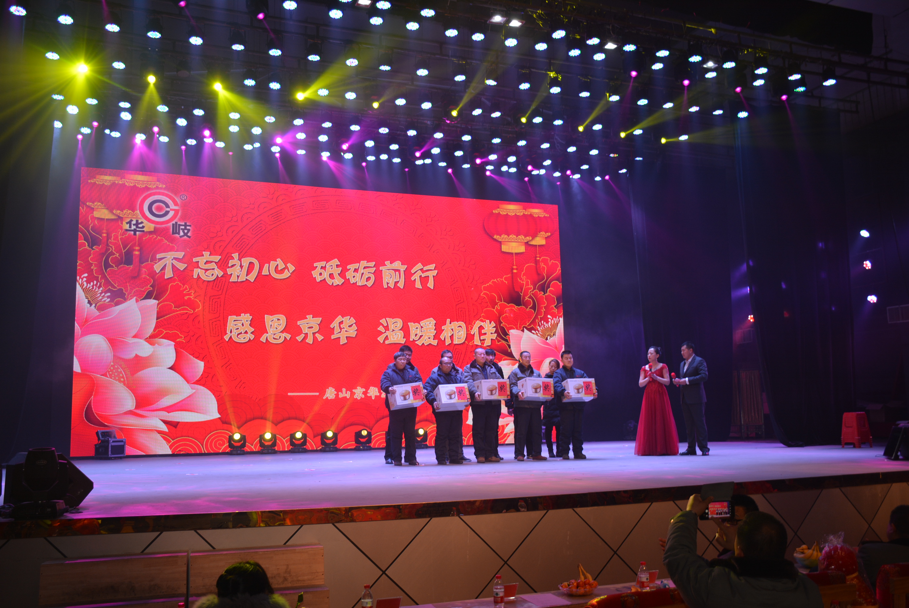 此次联欢会分为三个篇章。第一篇章“春天故事”在主持人的引领下,共同回顾了建厂时的艰辛与京华人的奋斗精神,创造了90天建厂投产的“京华速度”,一个焊管业界的娇子乘风破浪,开启了崭新的征程,公司成立17年来的发展历程让在场的员工历历在目。