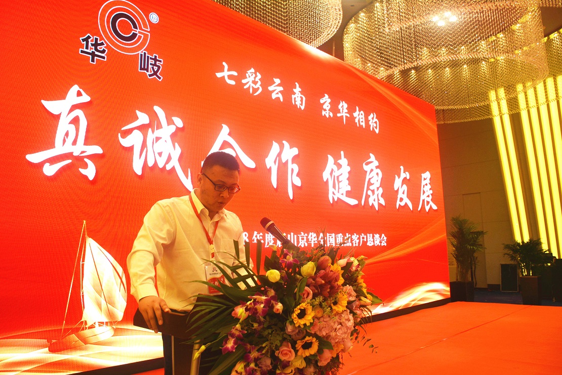 12月22日,唐山京华2018年度全国重点客户恳谈会在昆明索菲特大酒店召开。来自全国各地的108家重点客户140名代表应邀参加了会议。公司总经理温朝江、供销副总兼销售部长胡武、总经理助理郑茂明、销售副部长吴红涛及部分销售骨干、驻外业务经理等30余人参会。