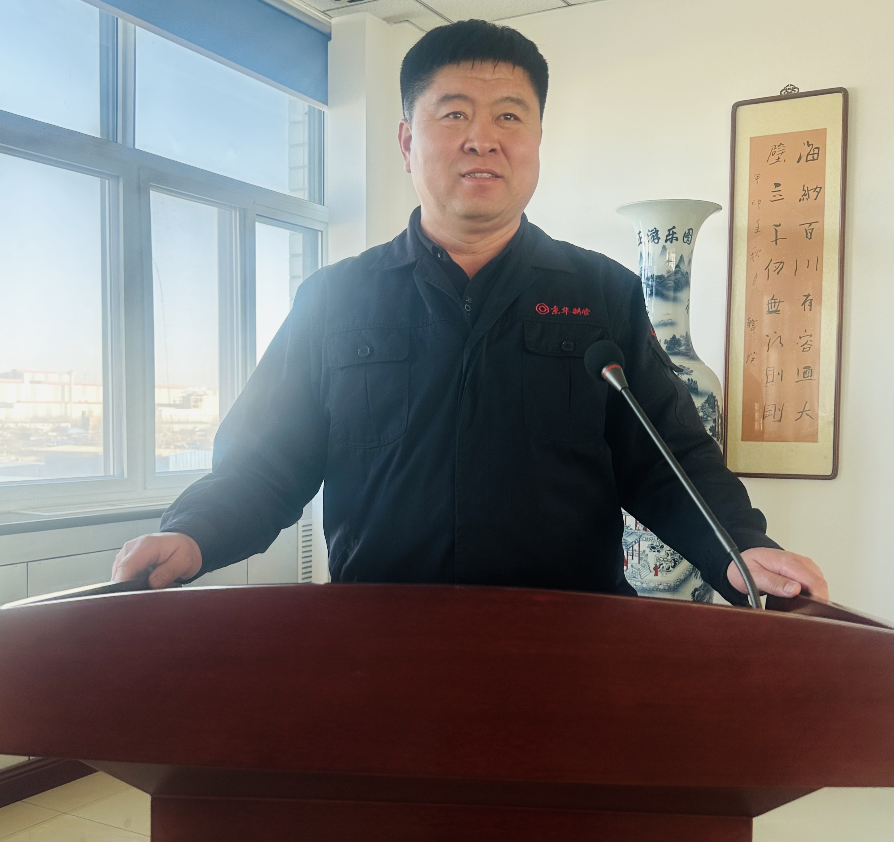 锚定新目标,干出新气象。总经理温朝江对新一年的生产工作提出四点要求。一要树立争先意识和荣辱观。要求各项生产指标排名集团前列,力争第一;二要树立创新思维,抛弃老套路、老模式、老经验。快速提高生产管理水平,强化自我要求,与时俱进不掉队;三是抓好日成本,细化过程管理。通过做好日成本分析、细化过程提升运营效率和管理效能;四是向设备向管理要效益。在设备稳运行上下功夫,注重设备的维护保养,充分发挥技改效能,狠抓设备作业率,通过管理实现生产效率、产品质量和经济效益的全面提升。